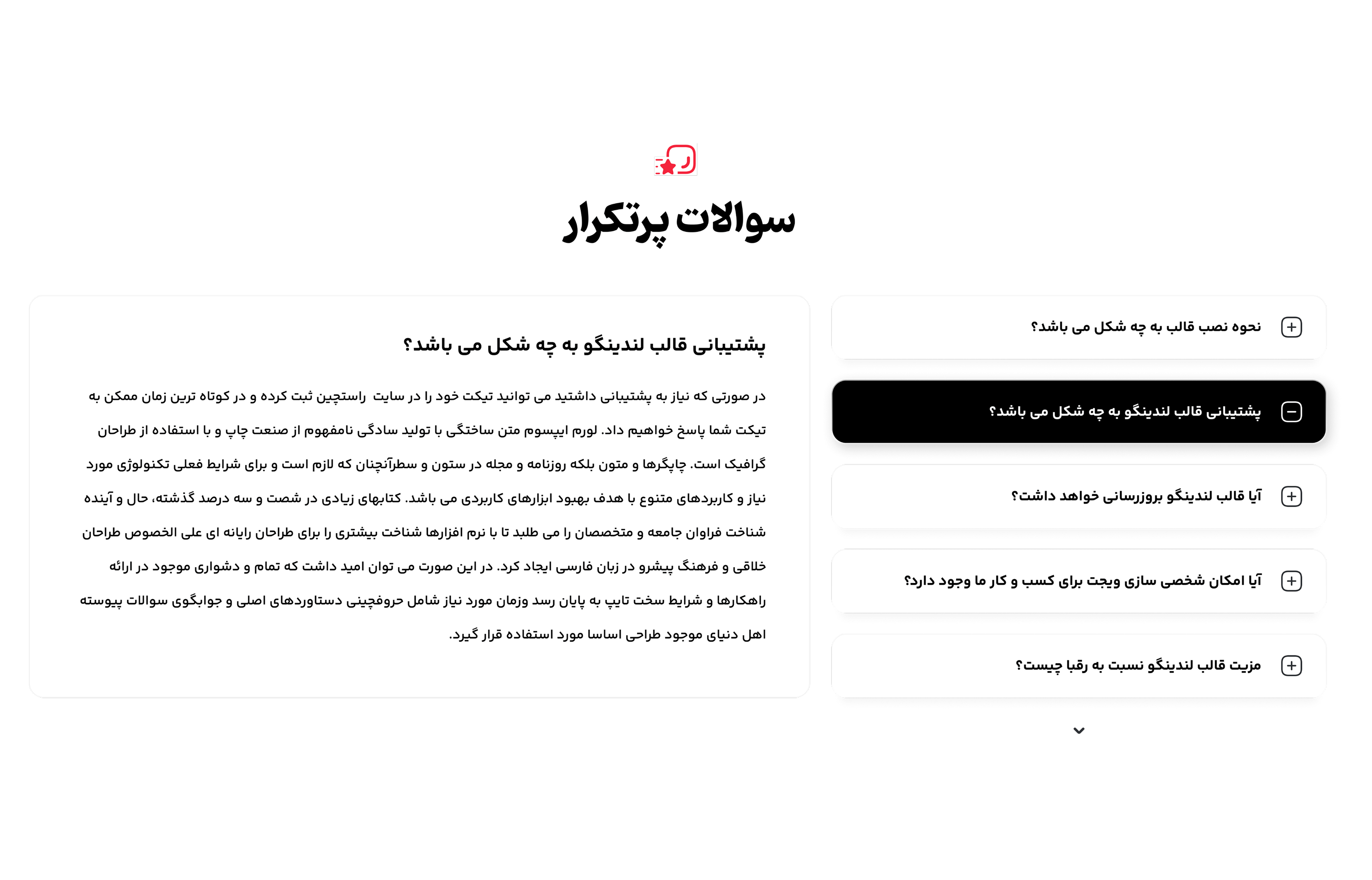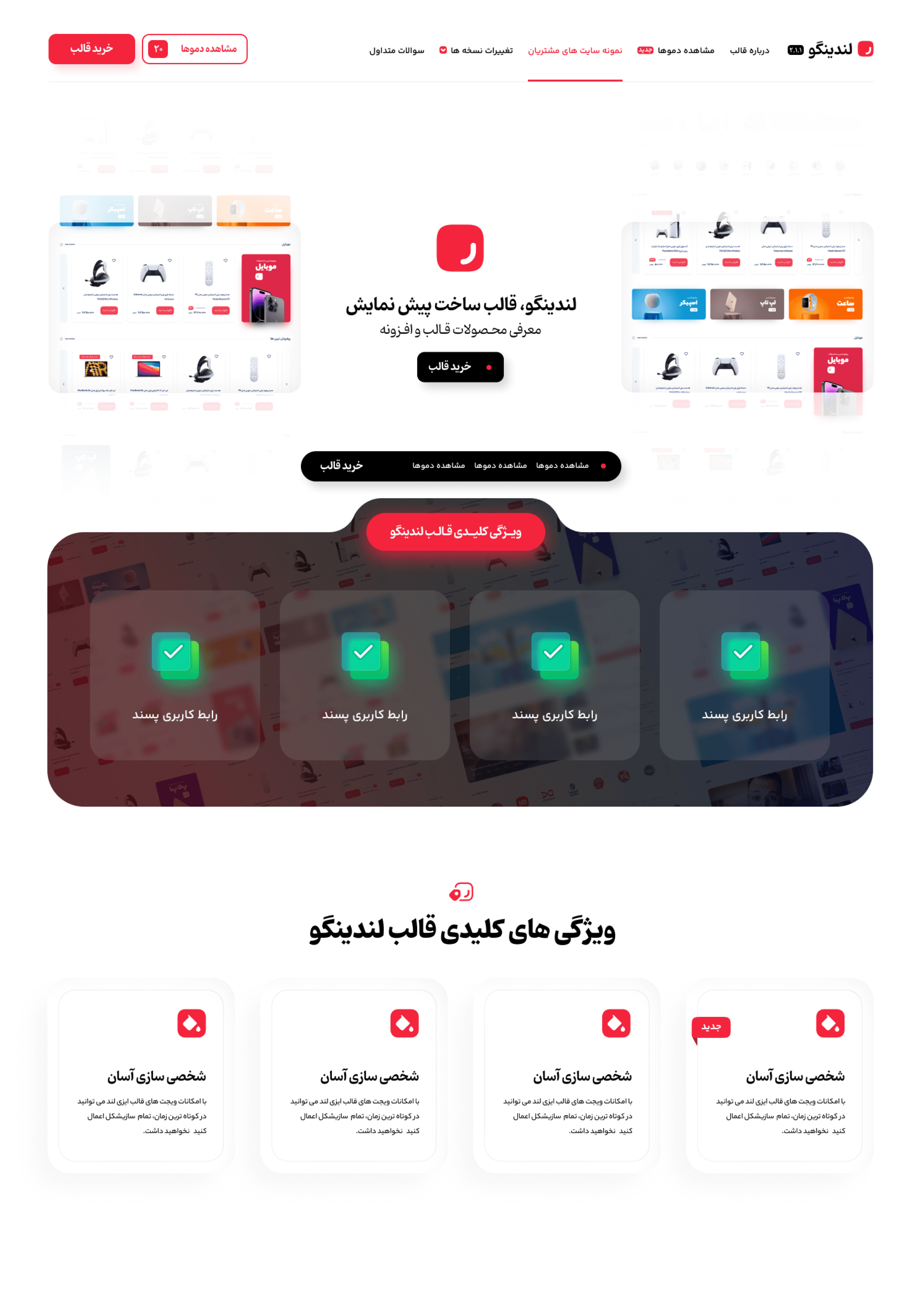 با لندینگو، بدون دانش فنی لندینگ پیجهای جذاب بساز! این قالب به لطف طراحی مدرن و امکانات سفارشیسازی بالا، تجربهای راحت و حرفهای رو بهت میده. لندینگو از لحاظ فنی هم یه انتخاب فوقالعادهست! سرعت عالی، کدنویسی تمیز و بهینهسازی سئویی، باعث شده که صفحات ساختهشده با این قالب، بهترین عملکرد رو داشته باشن.💪