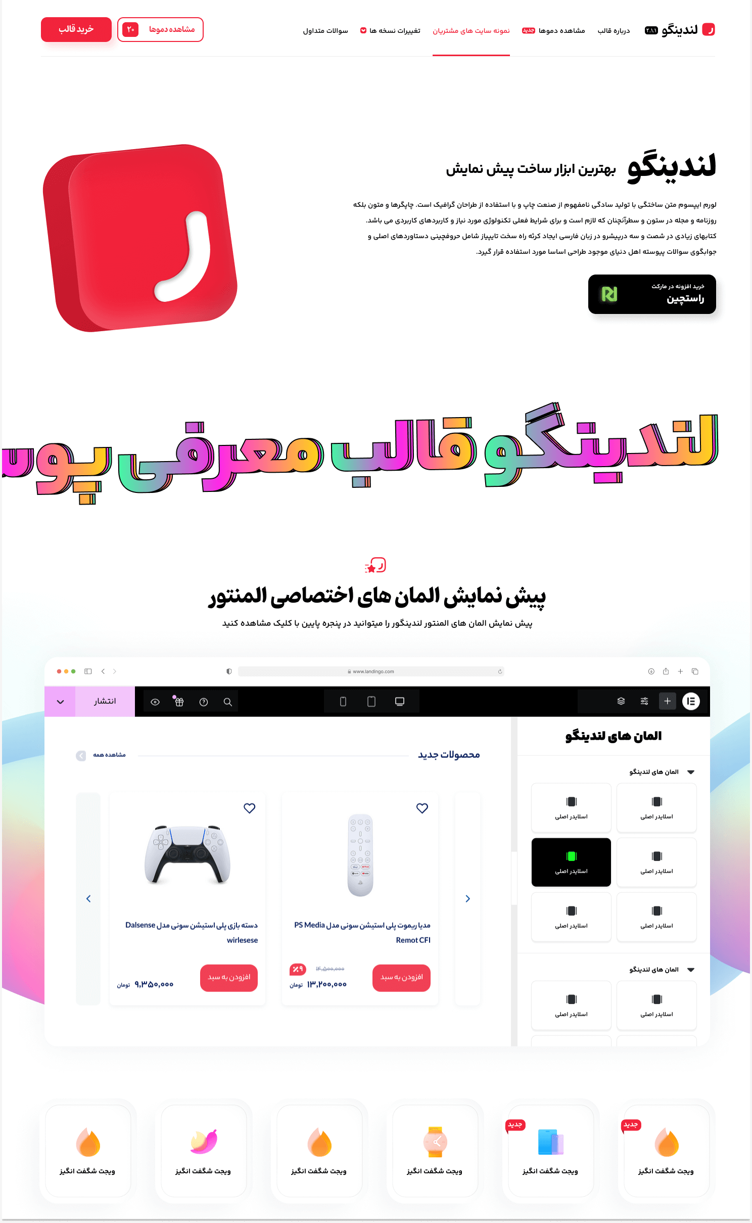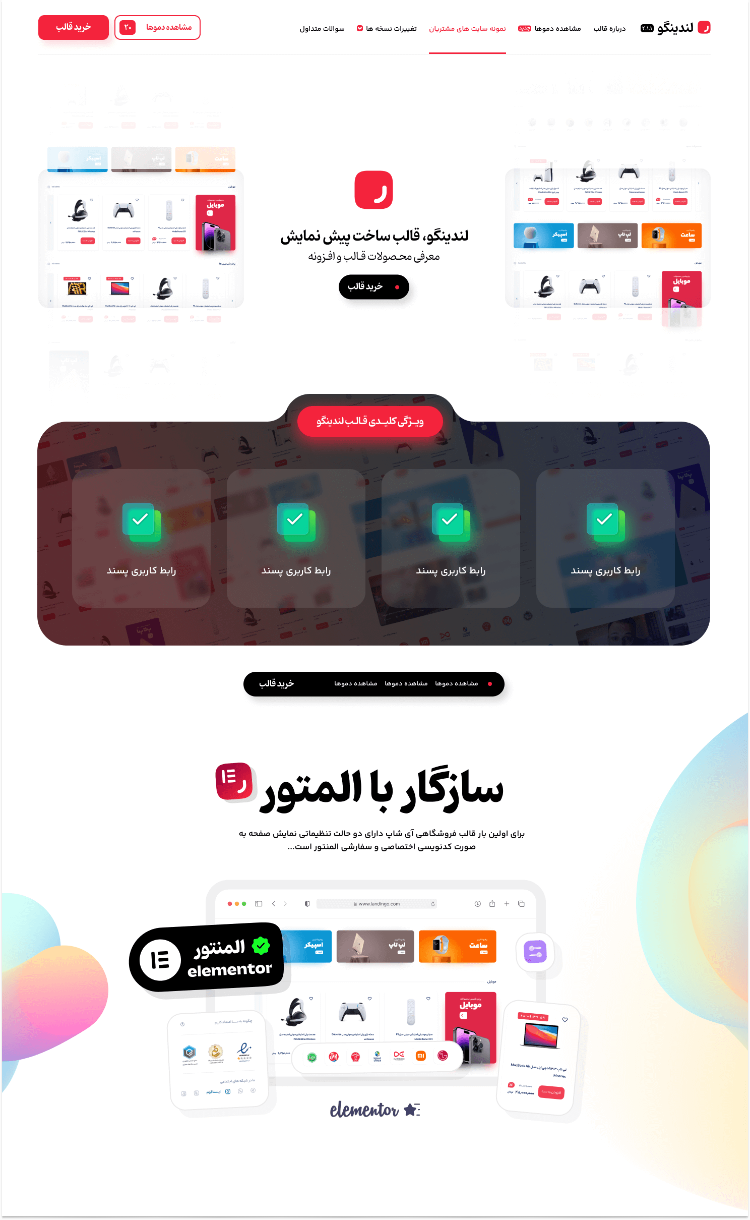 لندینگو یه ابزار بینظیر برای ساخت لندینگ پیجهای خلاقانهست! این قالب با طراحی شیک و سازگاری عالی با المنتور، بهت اجازه میده بدون هیچ دردسری، صفحههای فرود فوقالعادهای بسازی. از لحاظ فنی هم، لندینگو کاملاً بهینه شده سئوی قوی و کدنویسی استانداردش، باعث شده که سریع و کاربرپسند باشه. 😍