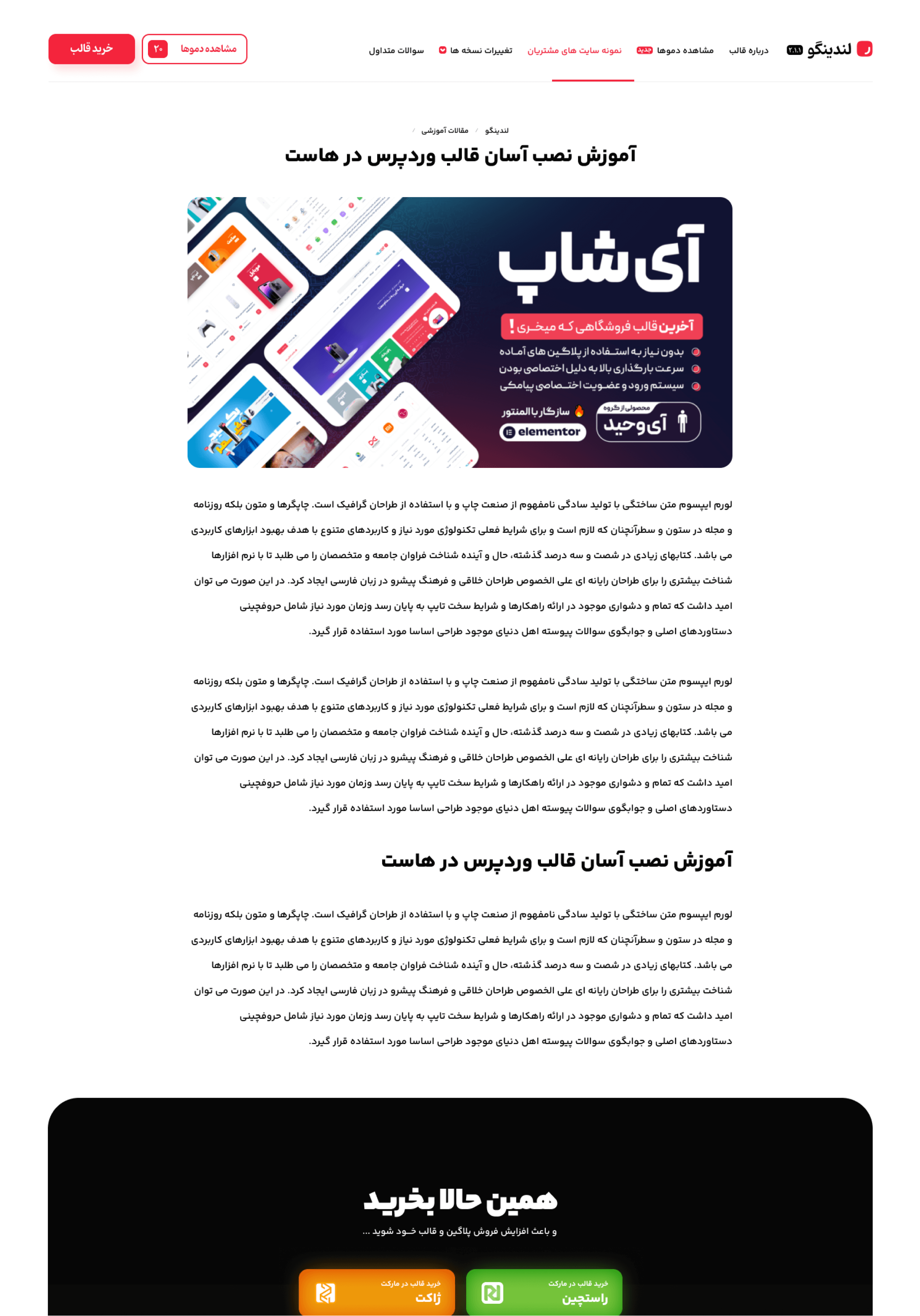 اگه یه لندینگ پیج سریع و حرفهای میخوای، لندینگو رو از دست نده! این قالب با پشتیبانی از صفحهساز المنتور و طراحی مدرن، بهت کمک میکنه بدون هیچ دردسری، لندینگ شگفتانگیز بسازی. از لحاظ فنی هم، لندینگو یه انتخاب فوقالعادهست! سرعت لود بالا، بهینهسازی حرفهای باعث شده که صفحات ساختهشده با این قالب، بهترین عملکرد رو ارائه بدن.🎯